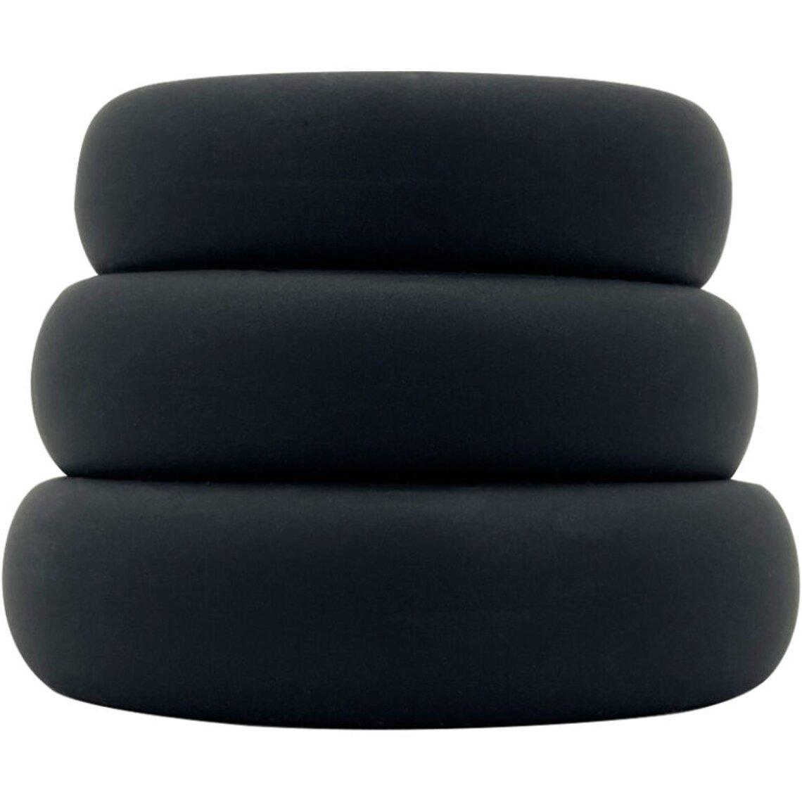 Set of 3 black silicone penis rings. High-quality silicone, flexible and stretchy. Diameters: 4.2 cm, 4.7 cm and 5.3 cm.