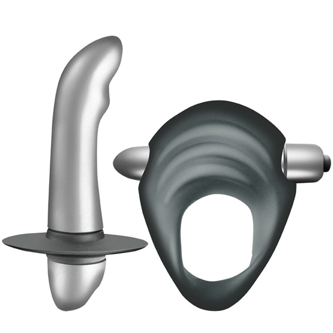 Beginner-friendly male kit: prostate vibrator and vibrating penis ring.