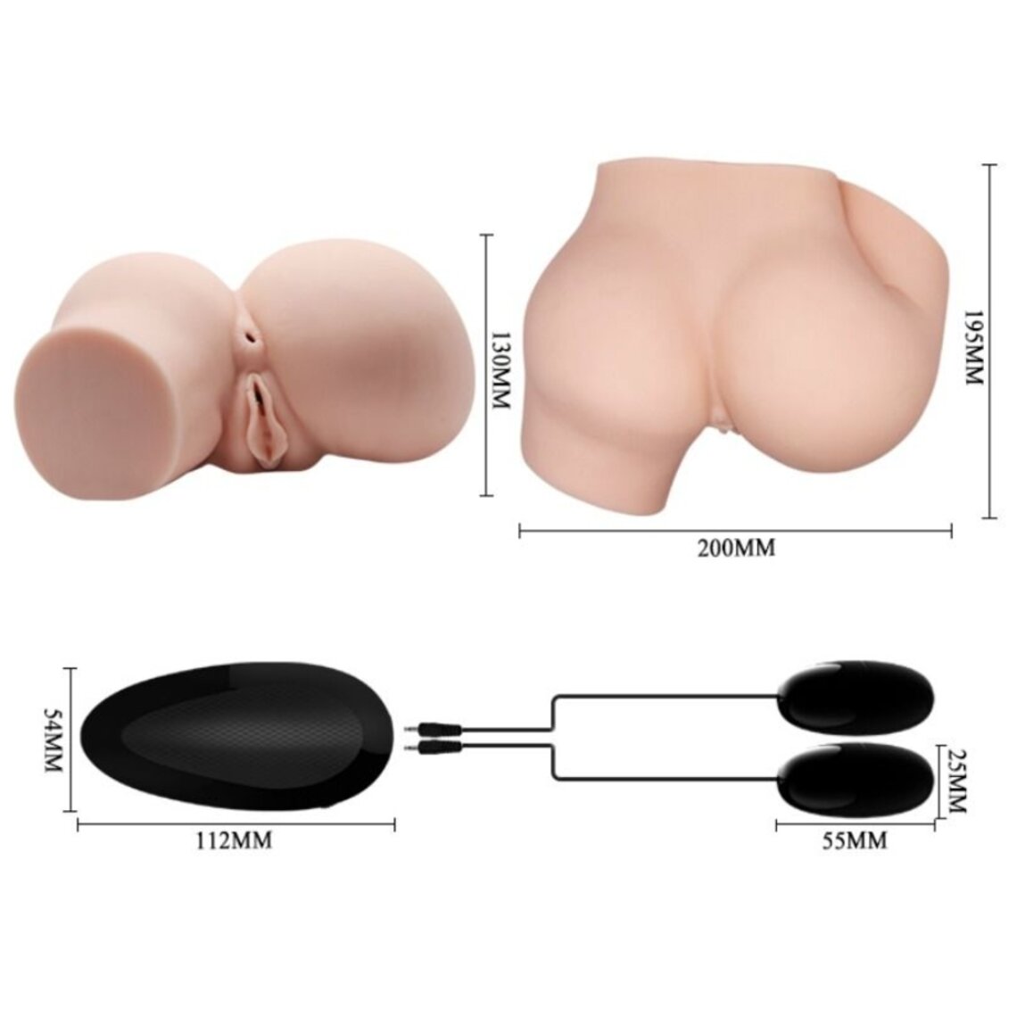 Realistic female butt for male masturbation. Features two pleasure holes: vaginal and anal.