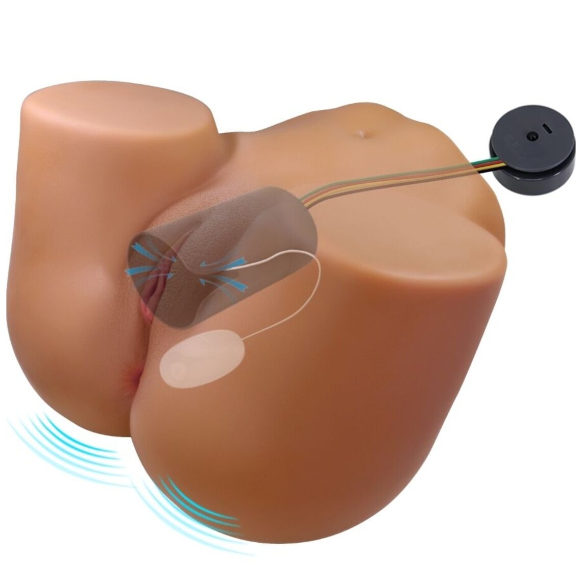 Realistic female butt for male pleasure. Features suction effect and moaning sounds. Weighs 11 kg for a lifelike feel.