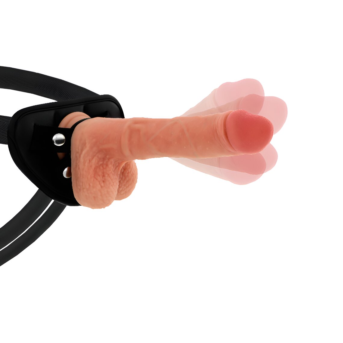 Adjustable harness with realistic dildo, remote control and automatic motion