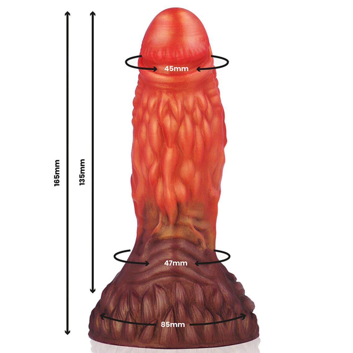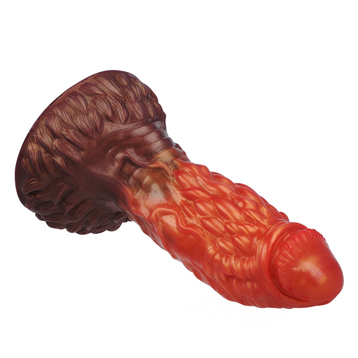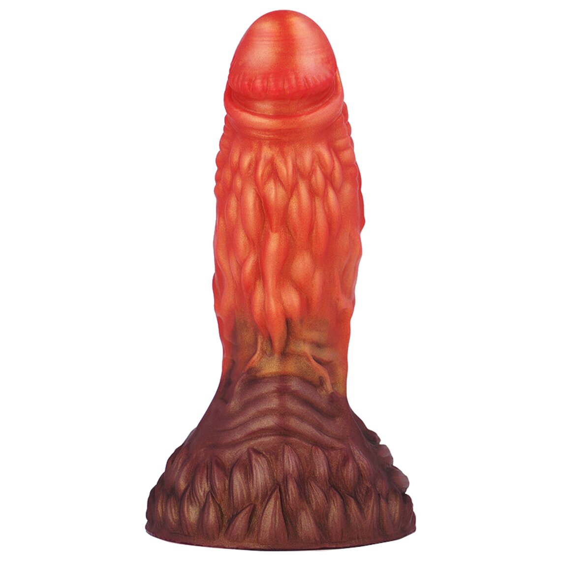 Phallic-looking fantasy dildo inspired by the roots of the earth. 16.5 cm tall. Dual-tone: brown and orange.