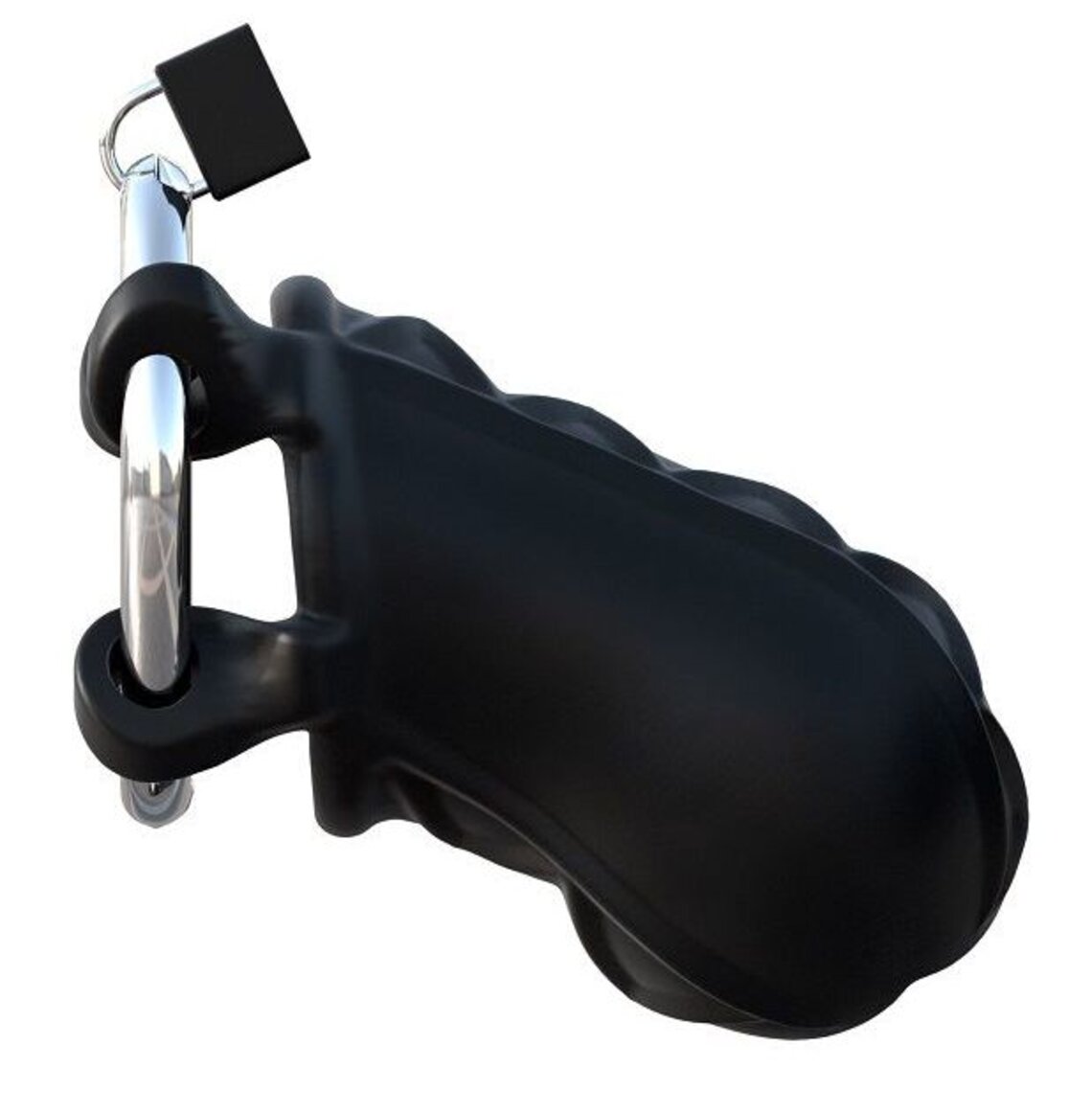 Silicone penis cage with an adjustable steel ring.