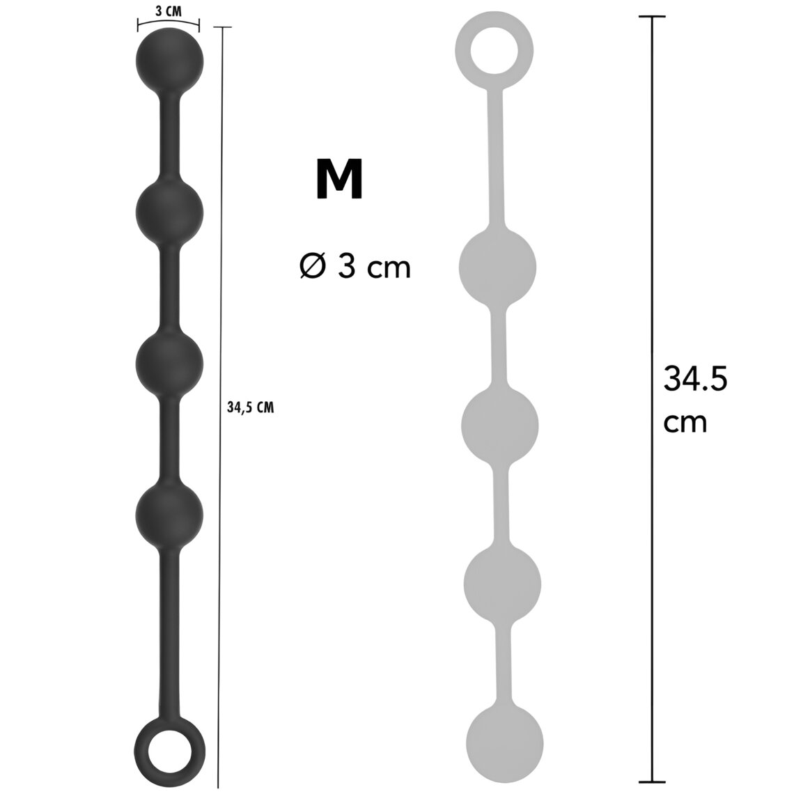 • ◾  Available in three sizes: M (Ø 3 cm – 34.5 cm), L (Ø 4 cm – 39 cm) and XL (Ø 5 cm – 49 cm)