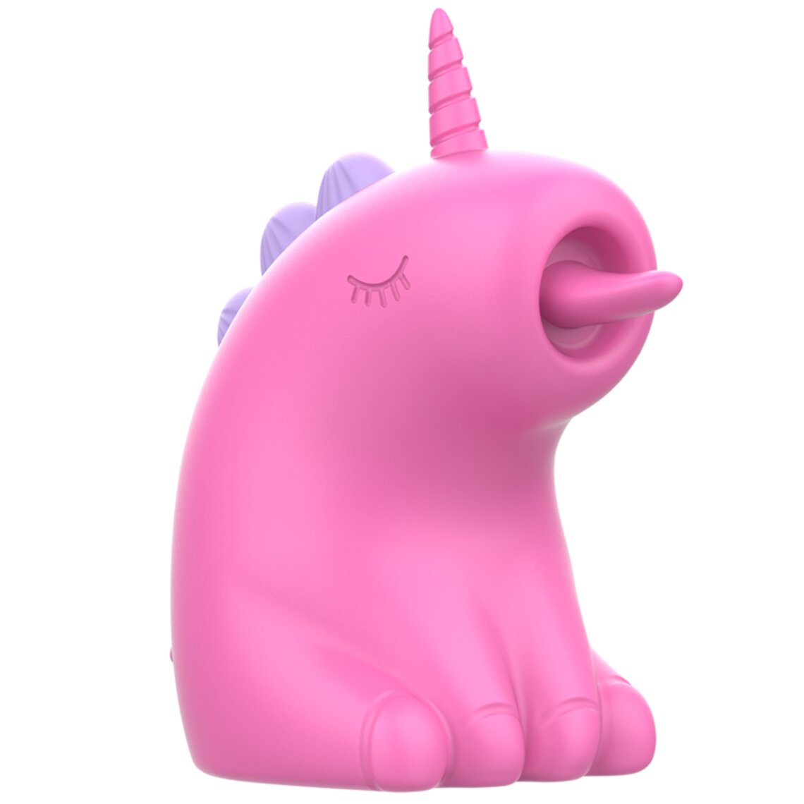 Playful pink unicorn-shaped vibrator. Its vibrating tongue stimulates the clitoris.