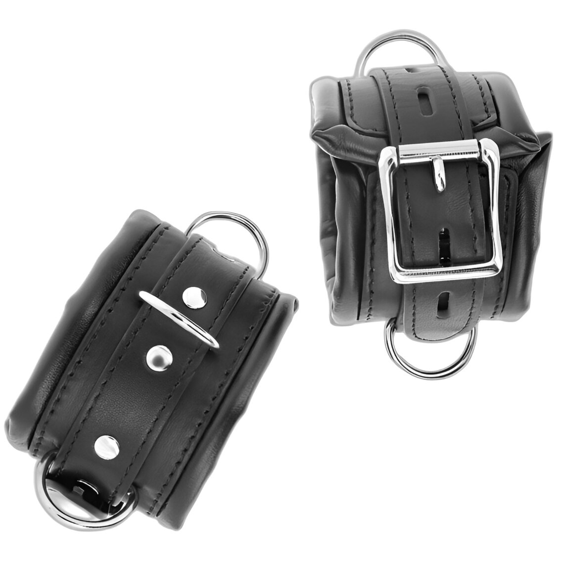 Padded adjustable wrist cuffs with metal rings and buckles