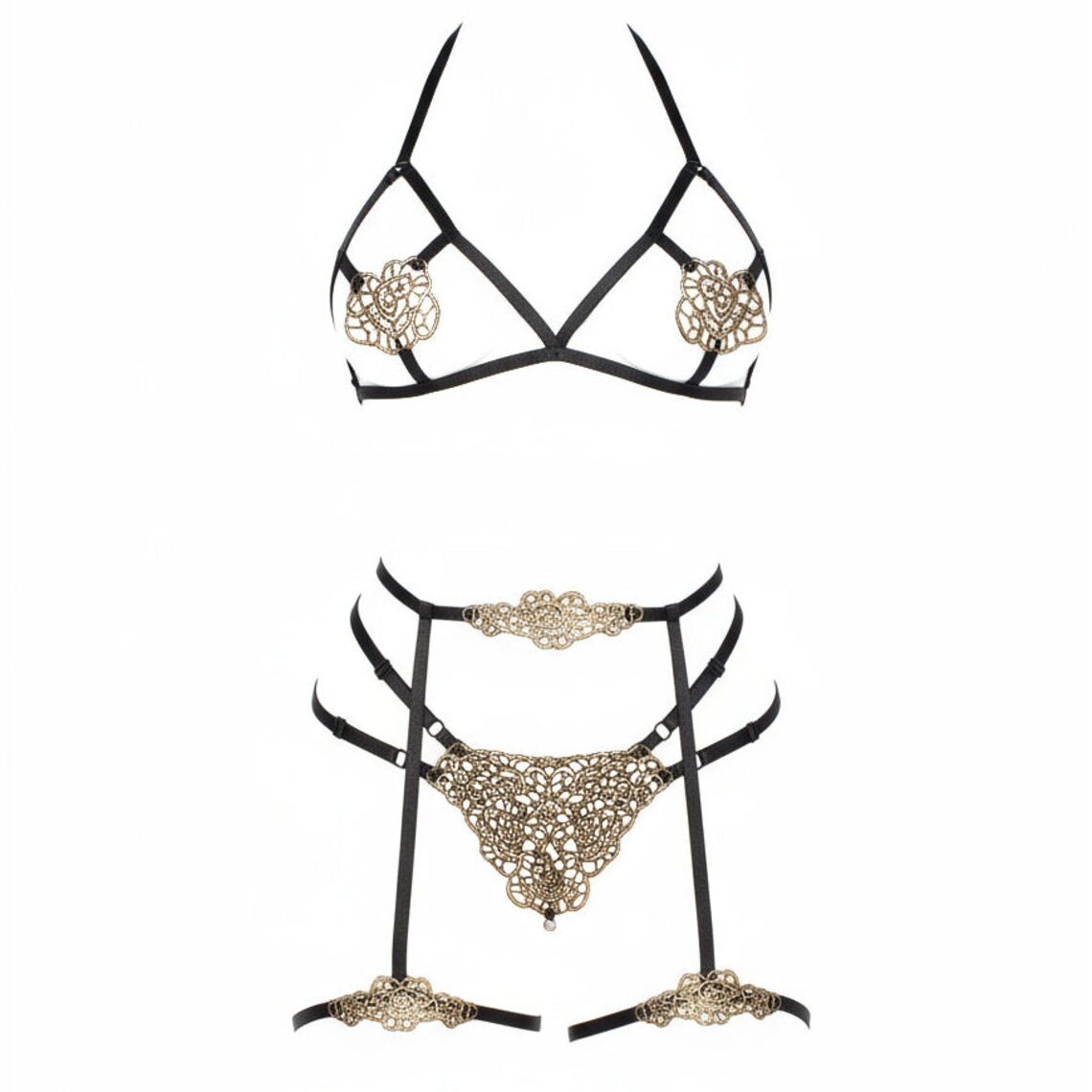 Sku codeLEG-AVENUE-89364-BRA-THONG-HARNESS-LUXURIOUS-SET-ONE-SIZE