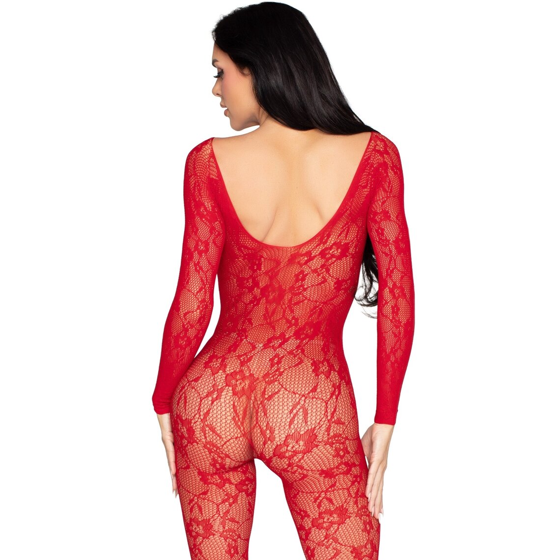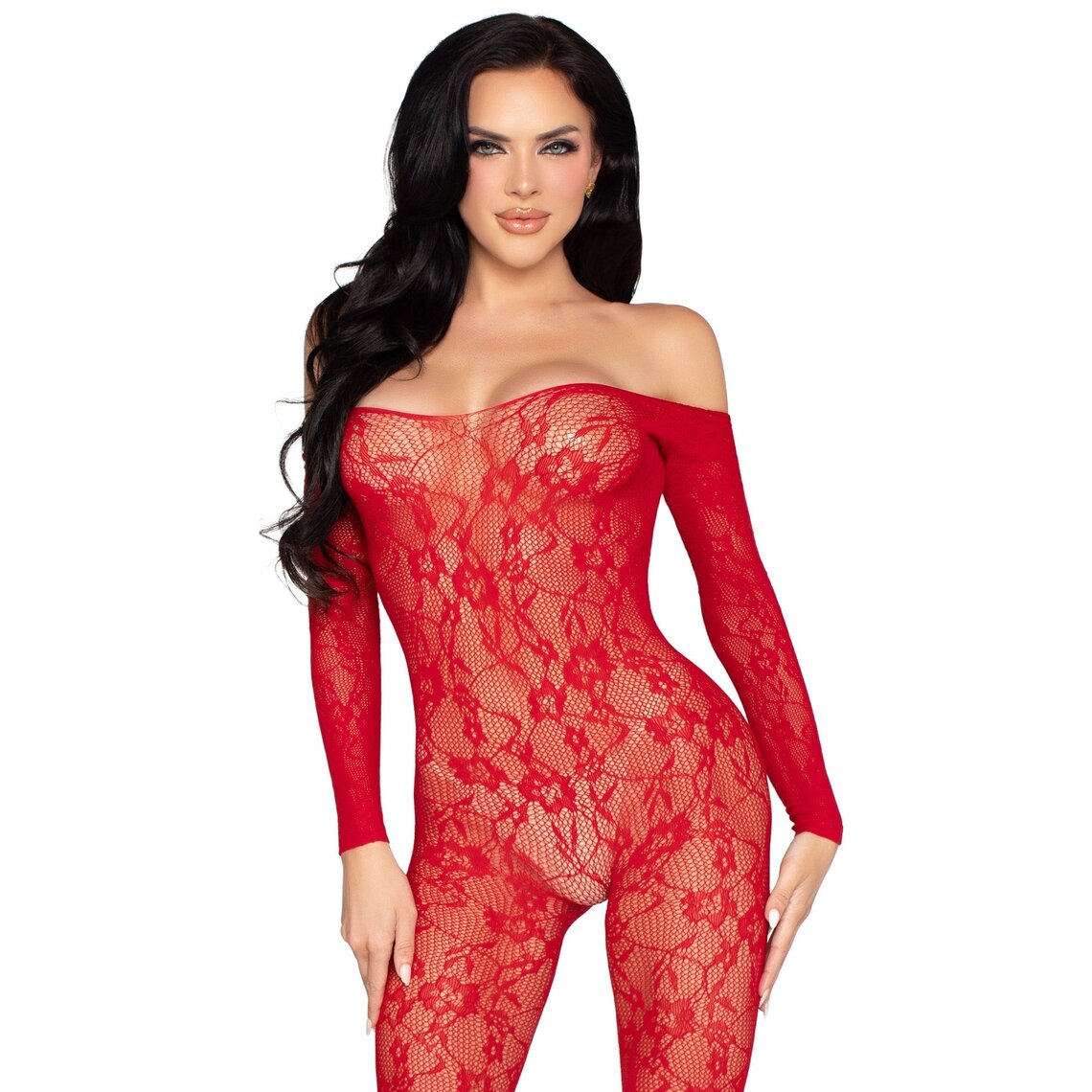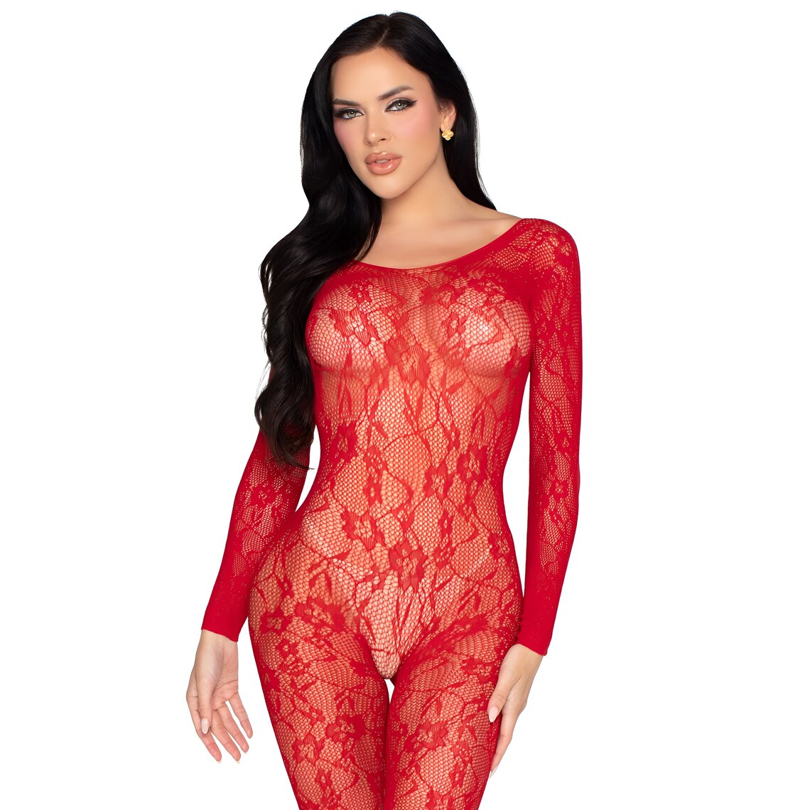 • Leg Avenue - Super Stretch Floral Lace Bodystocking (Red)