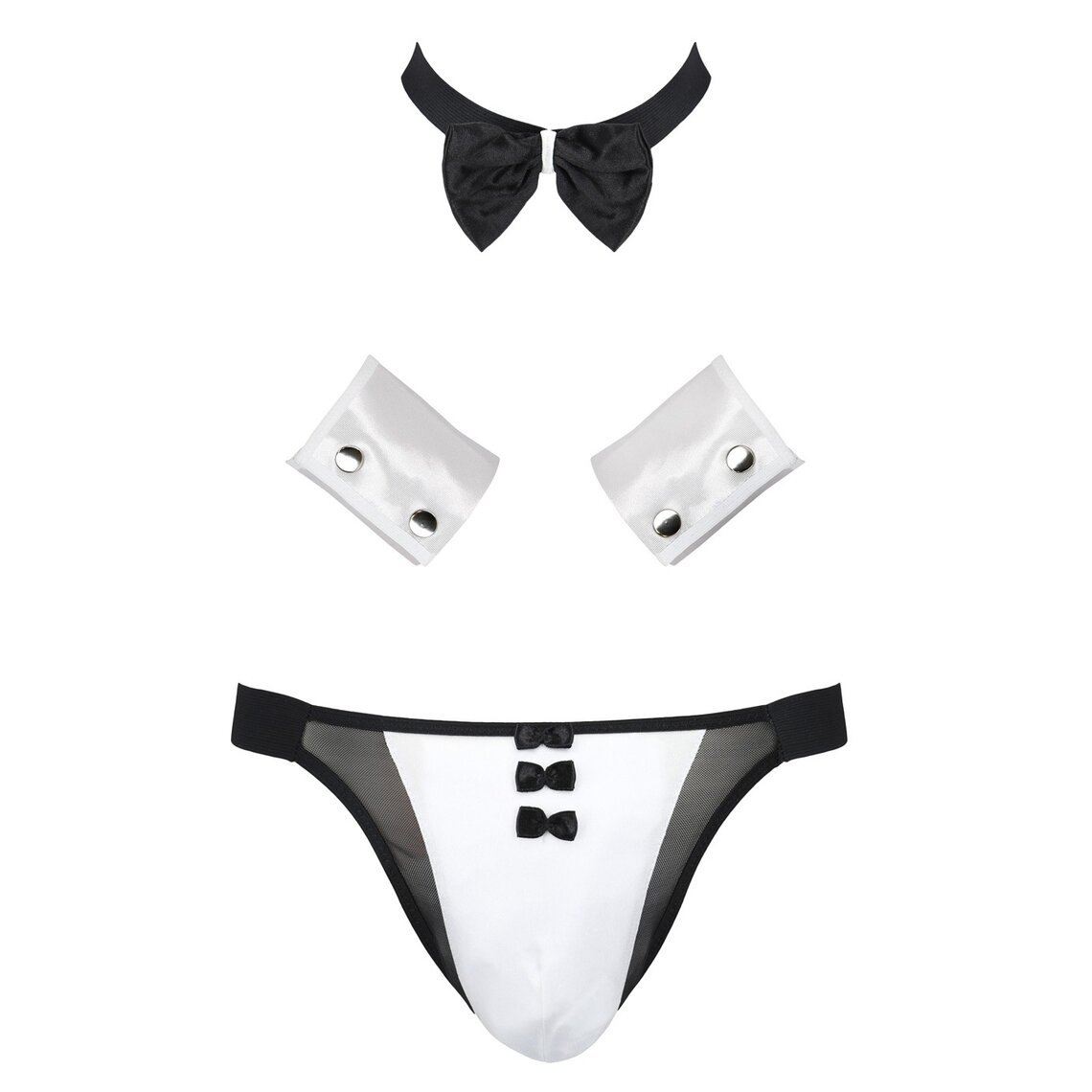 • ◾  Three-piece men’s set: briefs, bow tie and cuffs