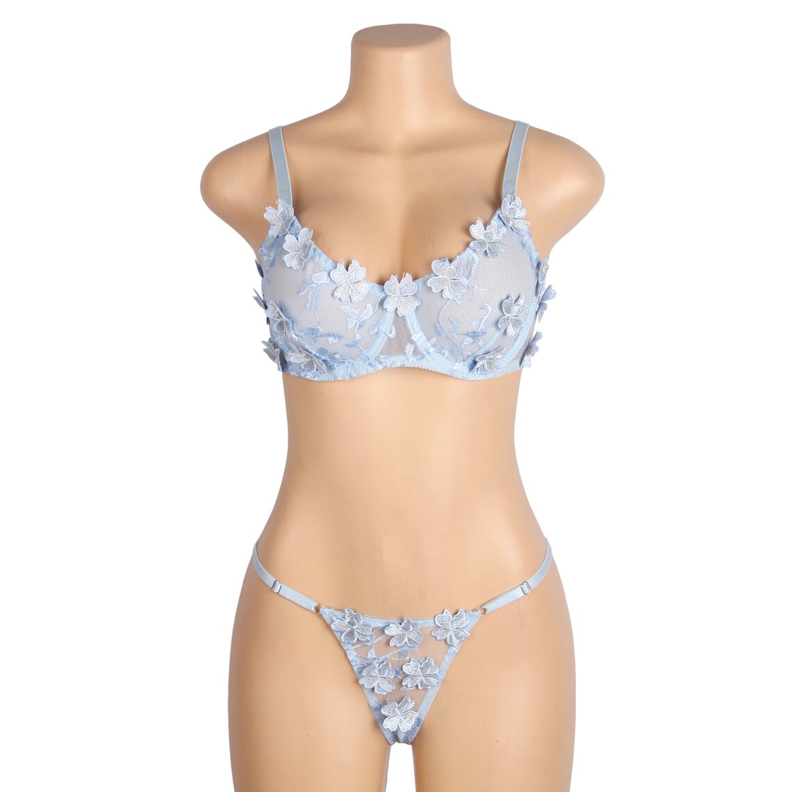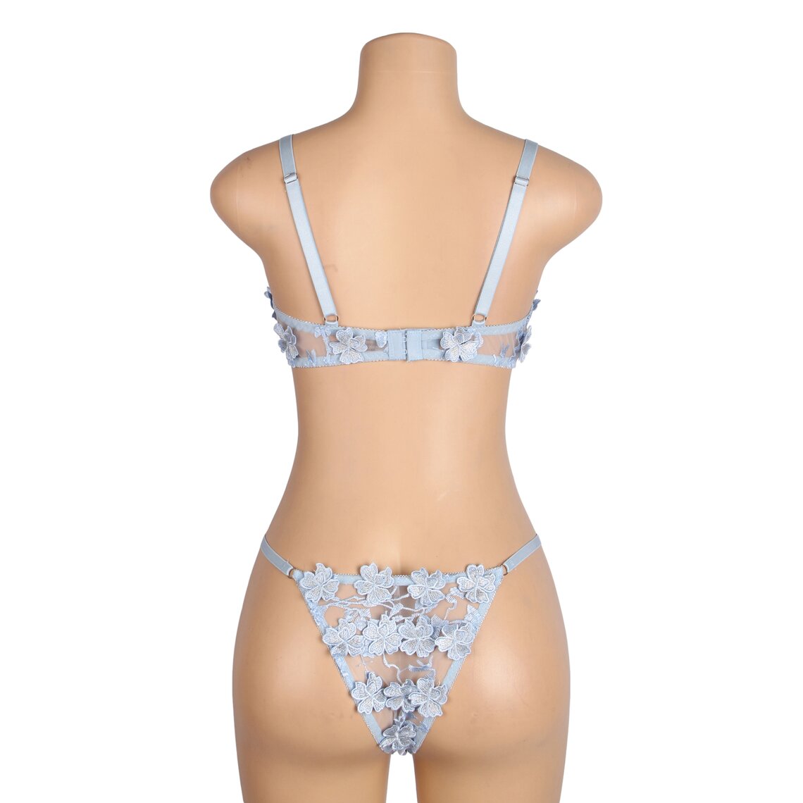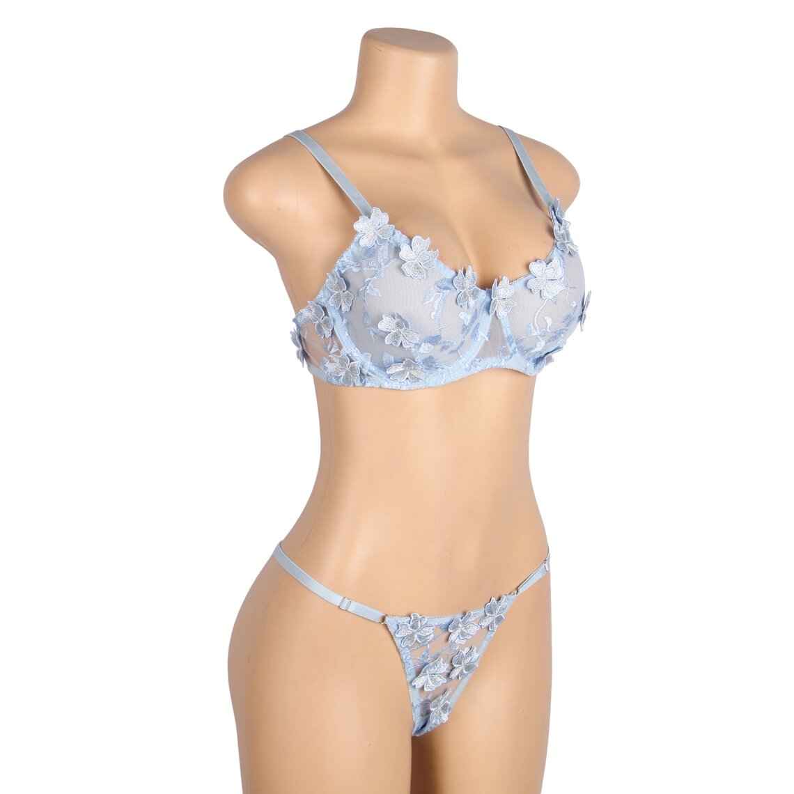 Discover the elegance and sensuality of the floral set by SUBBLIME, a lingerie piece designed to enhance femininity with a romantic and sophisticated style. This delicate set combines sheer fabrics with floral embroidery in a soft sky-blue tone, creating a fresh, elegant and highly seductive look.