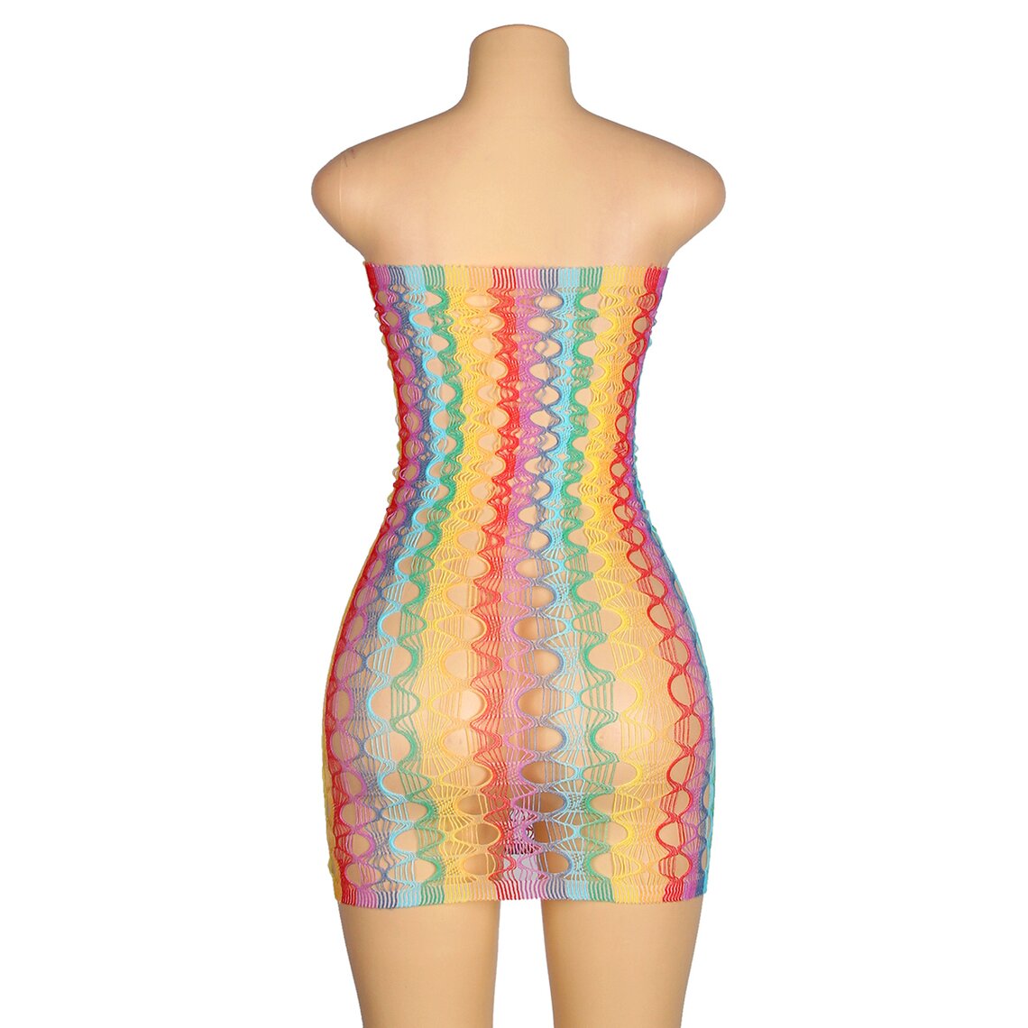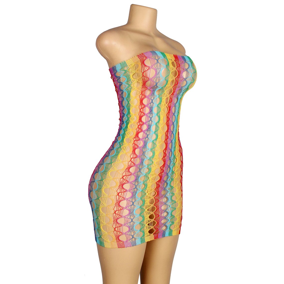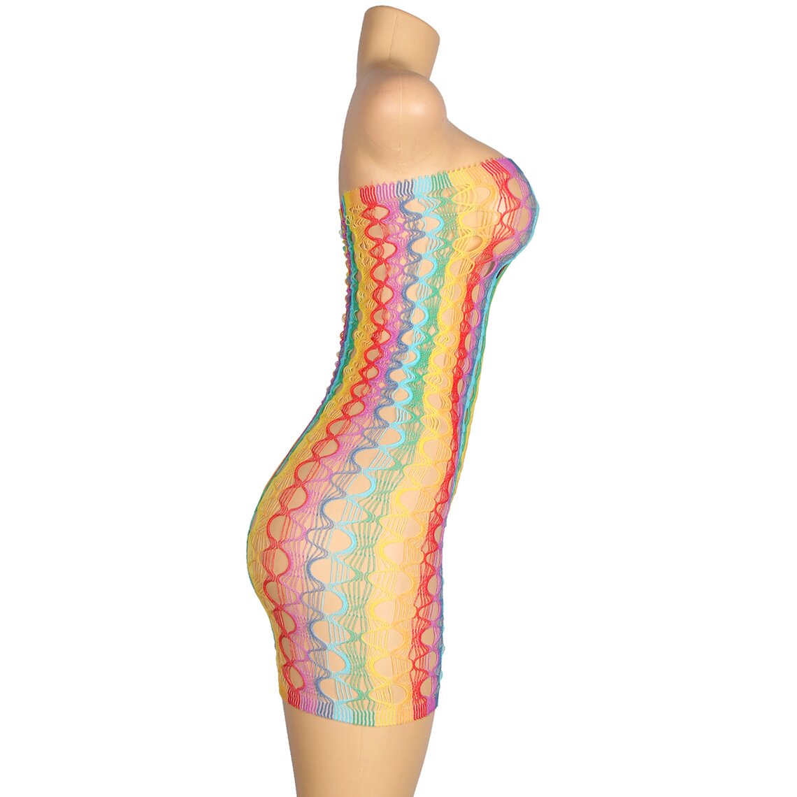 Sexy multicolor dress featuring a wide fishnet design. One size, stretchy fabric.